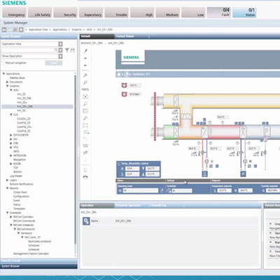 Desigo TM is a modern building management system for a full breadth of application support ensuring that facilities remain comfortable, productive, and achieve optimal energy and equipment performance. On top Desigo offers full integration of fire safety, and security systems. With system functions such as event management (events and alarms), time scheduling and trend logging, combined with advanced control functions, Desigo is a highly versatile asset in a building. Innovative Web technology, powerful databases and open communication make Desigo a financially wise investment in the future. It is scalable from small to large buildings and optimized for single as well as multiple disciplines. Desigo is consistent in its support of open communication, making it easy to connect a wide variety of building services systems on the basis of standard open data interfaces: